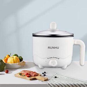 RUNHU Electric Hot Pot, 1.2L Portable Ramen Cooker with Nonstick Coating, Mini Hot Pot for Dorm/Office/Travel, Multi-Function Electric Pot for Stir Fry, Steak, Noodles, Soup, Pasta(White)