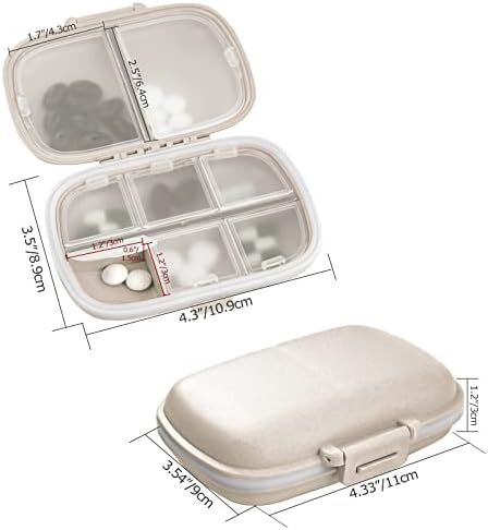 8 compartments: Each pill box consists of 6 small and 2 large compartments for different sizes of pills and vitamins.