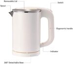 Capacity: 0.5 liters water kettle. Mini compact and easy to carry, perfect size for travel. Cool touch exterior and ergonomic handle, no scalding hazard.
