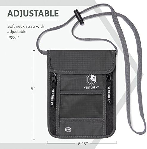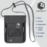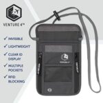 ✅ SUITABLE FOR MEN AND WOMEN – 5.5″ high and 8″ wide , the VENTURE 4TH RFID Passport Holder can be comfortably WORN AROUND THE NECK AND UNDERNEATH YOUR CLOTHING to protect against pickpockets . It’s slim enough that it is virtually invisible even under thin layers of clothing concealing your cash and valuables
