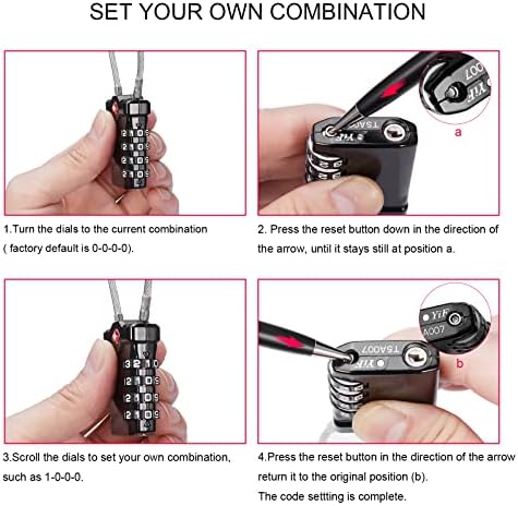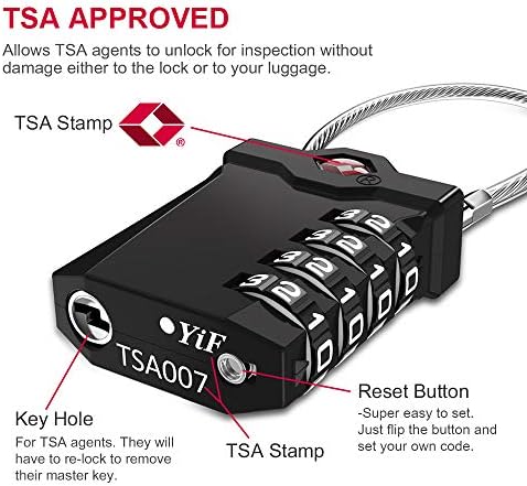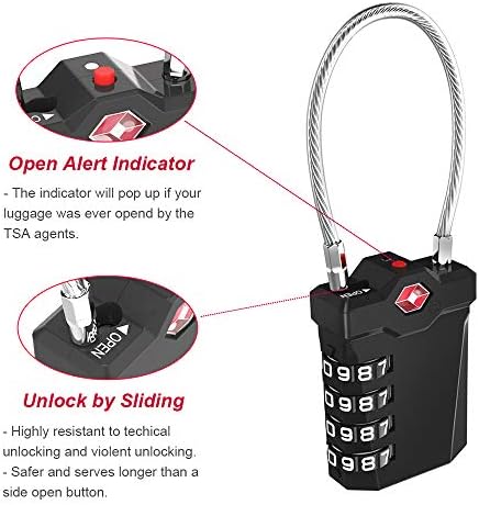 ▶SECURE & SOLID: The resettable 4 digit combination TSA locks allow you to set you own code with 10,000 options. It is 10 times harder to crack than a 3 digit. The heavy duty cable travel padlocks come with solid, compact body made of high strength zinc alloy. It is tough enough to survive even the roughest baggage handling. The feature opening by sliding is advanced and unique among TSA locks on the market, highly resistant to technical and violent unlocking .